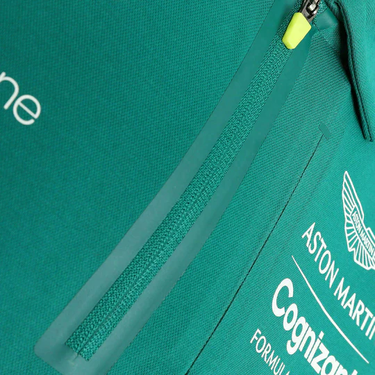 The latest Aston Martin Aramco Cognizant Formula One Official Team Polo – as worn by drivers Sebastian Vettel and Lance Stroll – embodies our mission with a fresh take on our striking attire. Manufactured from a high-end 4-way stretch breathable pique fabric and an innovative combination of cotton, polyester and elastane. The wearer will also experience added comfort with the inclusion of de-bossed moisture function side panels. Be part of the team with the Official Team Polo Mesh inner cuff detail for comfort De-bossed moisture function side panels Concealed laser cut chest pit pass pocket with welded closure De-bossed tape to shoulders & back neck