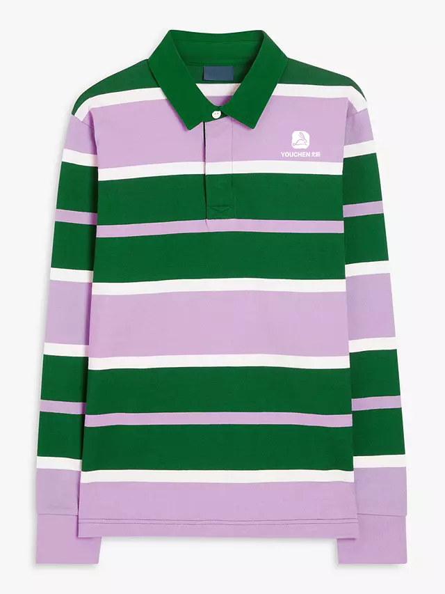 Men 100% Cotton Multiple Color Striped Long Sleeves Rugby Polo Shirt for Men Custom Embroidered Logo