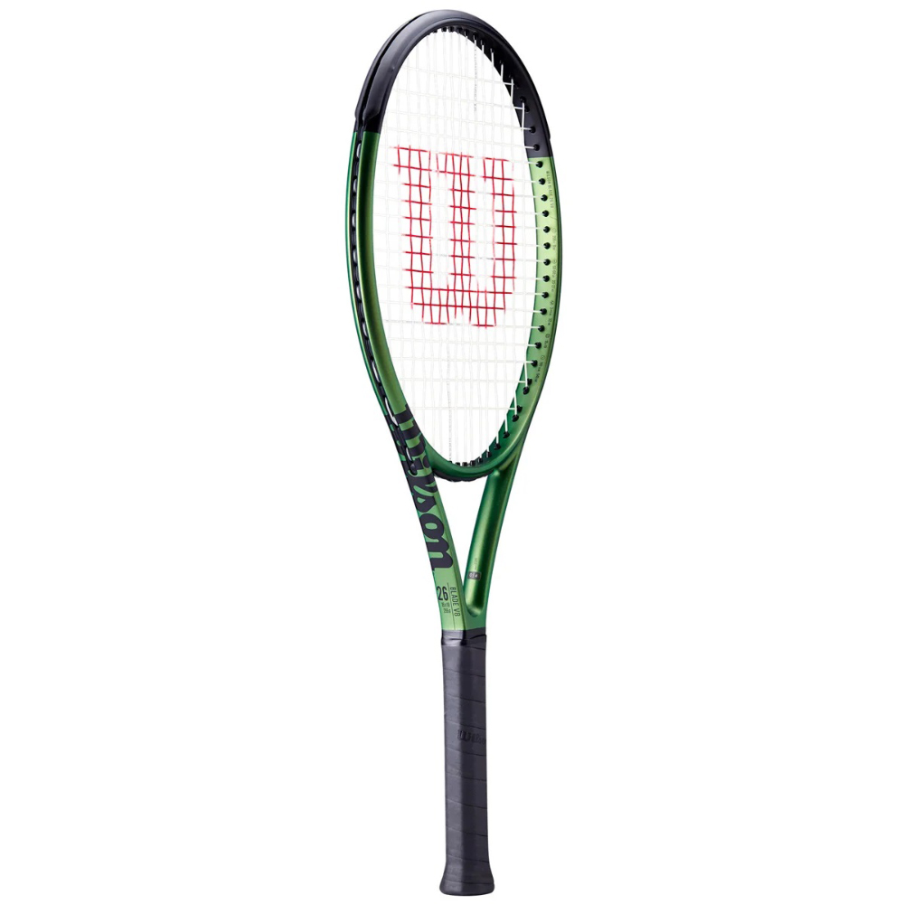The Blade 26 v8 excites with head-turning looks and top-flight performance for junior players developing their game. Conducive for smooth, easy swings that allow players to be aggressive and dictate play, this racket can accelerate skill and confidence ahead of schedule. All-new design sports flashy green metallic finish for vibrant look, while top features include a Top Grip Taper on the handle for better feel on two-handed backhand and Parallel Drilling for a more forgiving string bed response. Racket comes pre-strung with Wilson Sensation 17/1.25, an arm-friendly multifilament string built for enhanced comfort.