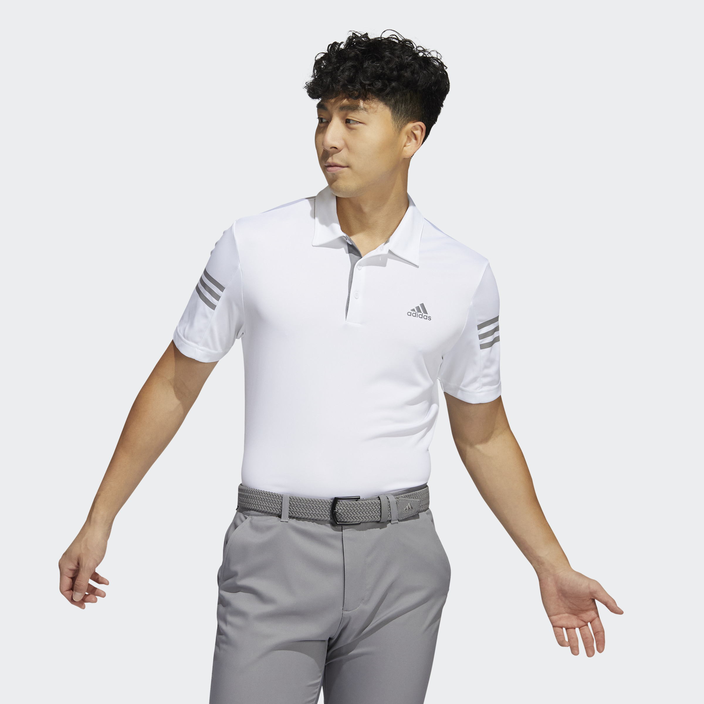 Tee off in 3-Stripes style in this golf polo shirt. The soft, lightweight fabric is made with AEROREADY to manage moisture and keep you dry. An adidas Badge of Sport on the chest completes the look. Made with 100% recycled materials, this product represents just one of our solutions to help end plastic waste.