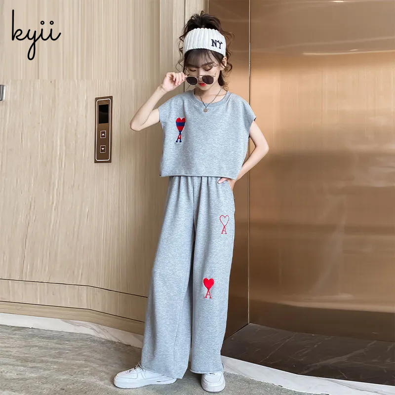 KYII Girls set two-piece Short Sleeve top children Set ky22276