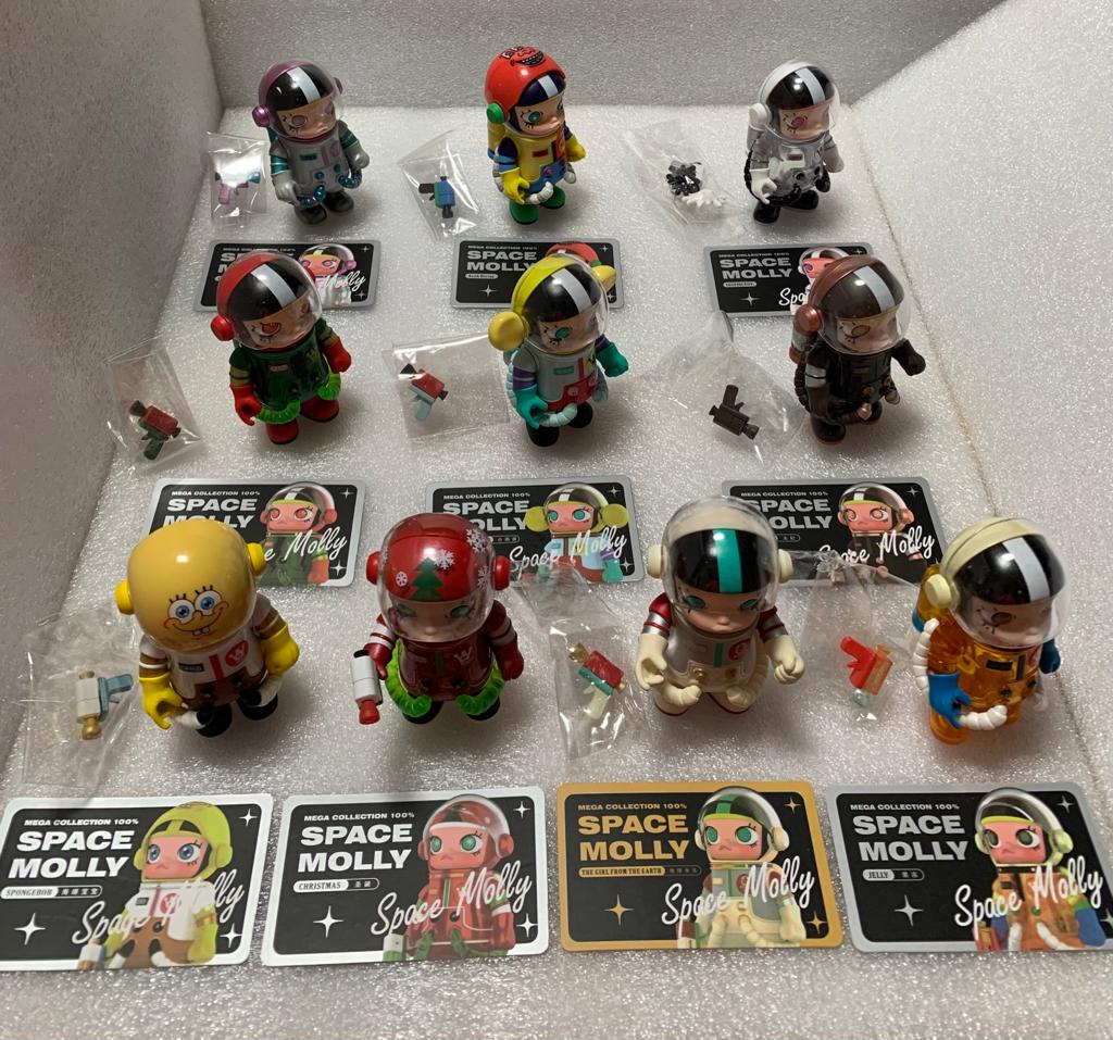 【SG Supplier】*Ready Stock* Mega Collection 100% Space Molly 9 + 1 (Hidden Character) Anniversary Blind Box Bubble Mart + 10 Transparent Casing