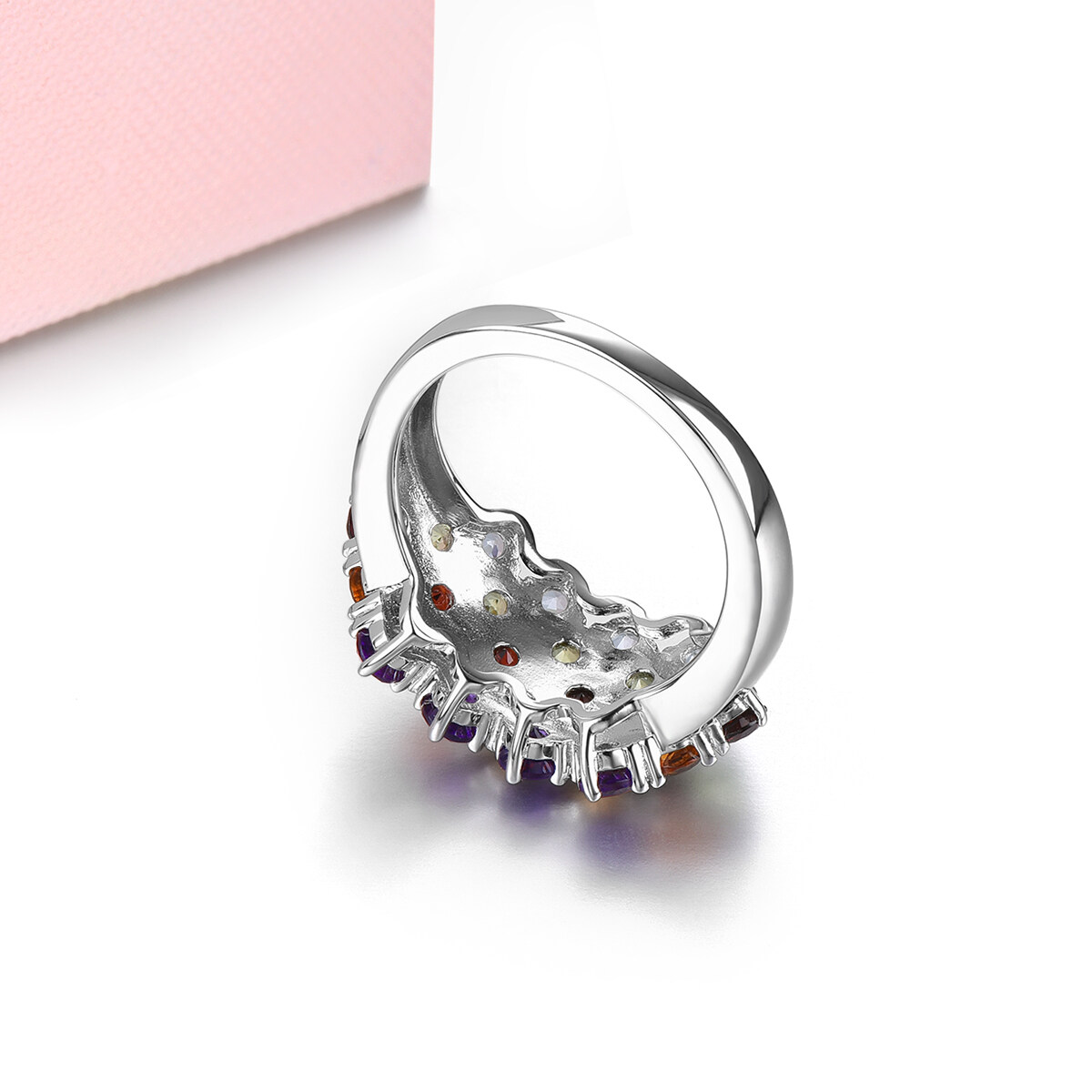 Lohaspie Jewelry Real 3 Carats 925 Silver Ring With Gemstone Natural Peridot Garnet Ring Colorful Gemstone Ring Garnet Ring For Women Jewelry Christmas Gift